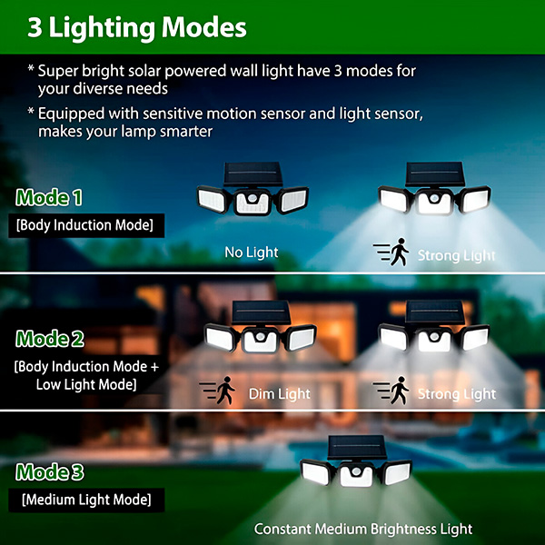 ✅ 3 gudrie apgaismojuma režīmi – Izvēlieties nepieciešamo spilgtuma līmeni!