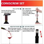 Šis 4 vienā komplekts ietver gaisa sūkņa attaisāmo, folijas griezēju, aeratora uzgali un vakuuma aizbāzni nevainojamai vīna baudīšanai.