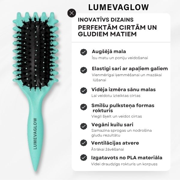 Mūsu birste izlīdzina katru matu šķipsnu, padarot tās izteiksmīgas un bez sprogām visas dienas garumā.