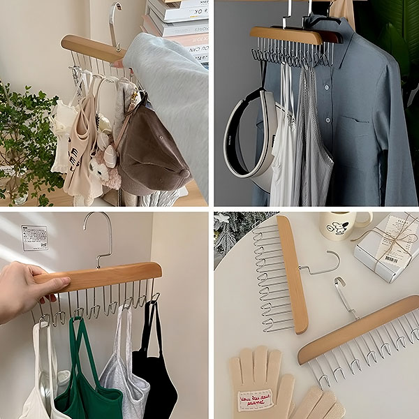 Esat noguris no pārblīvētiem krūšturiņiem un kaklasaitēm, kas aizņem nevajadzīgu vietu? Mūsu OCTAHANGER ar 8 āķīšiem ir izstrādāts, lai pārveidotu jūsu apģērbu uzglabāšanas vietu, saglabājot apakšveļu un aksesuārus glīti sakārtotus un eleganti izkārtotus.