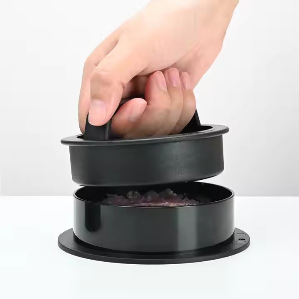 Ergonomiskais rokturis nodrošina ērtu satvērienu, ļaujot ar minimālu piepūli izspiest ideāla biezuma kotletes.