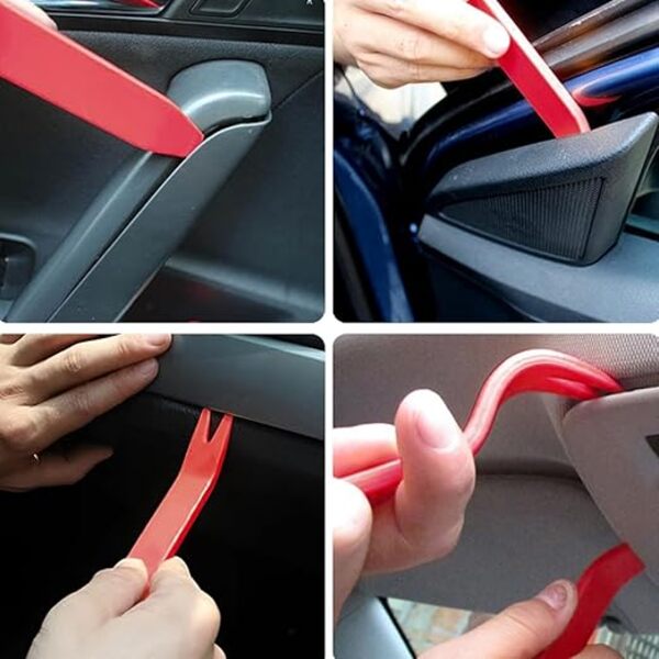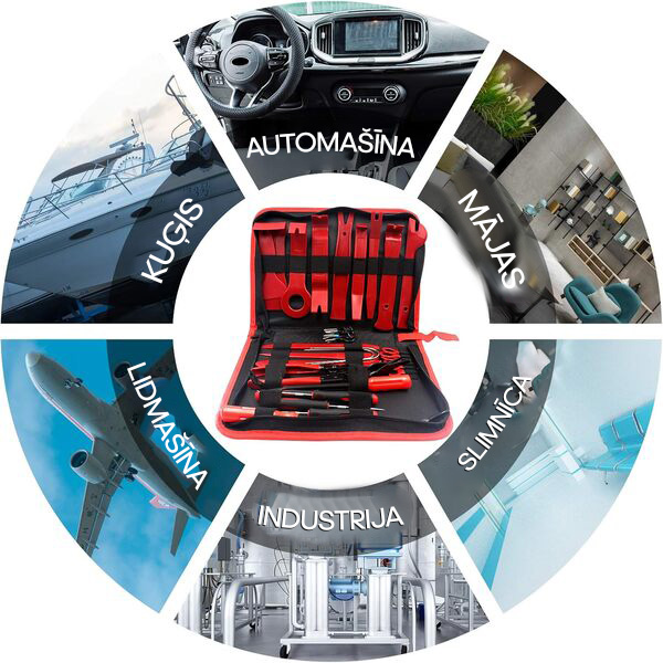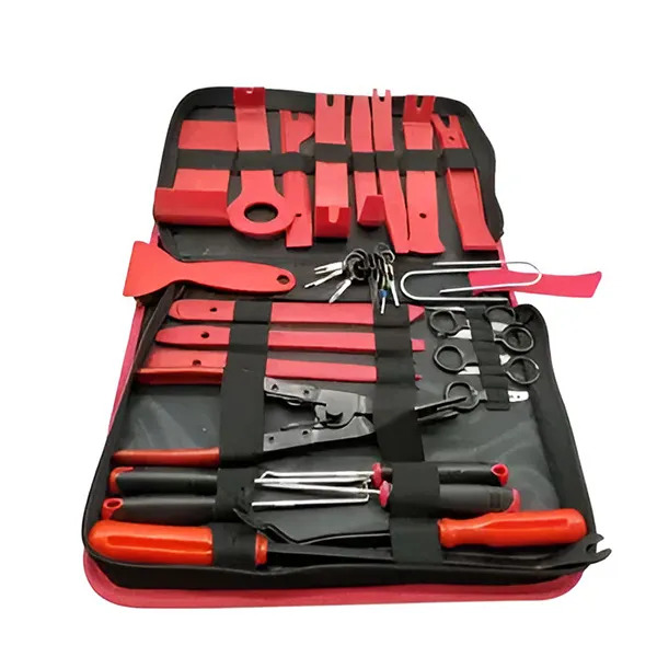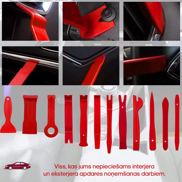 Automašīnas apdares noņemšana var būt biedējoša bez pareizajiem instrumentiem. Mūsu komplektā ir 38 dažādi instrumenti, kas īpaši izstrādāti vieglai un drošai salona un ārējās apdares noņemšanai. Tas ļauj bez piepūles pašiem veikt nelielus remontdarbus un regulējumus, kas ir lieliski piemērots neparedzētu problēmu risināšanai garu ceļojumu laikā.