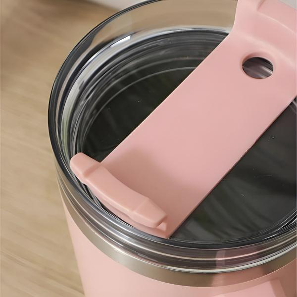 Vairs nekādu mitru somu vai automašīnu sēdekļu. Ar hermētisku vāku un drošu salmiņa atveri varat to droši iemest mugursomā vai turēt uz galda.