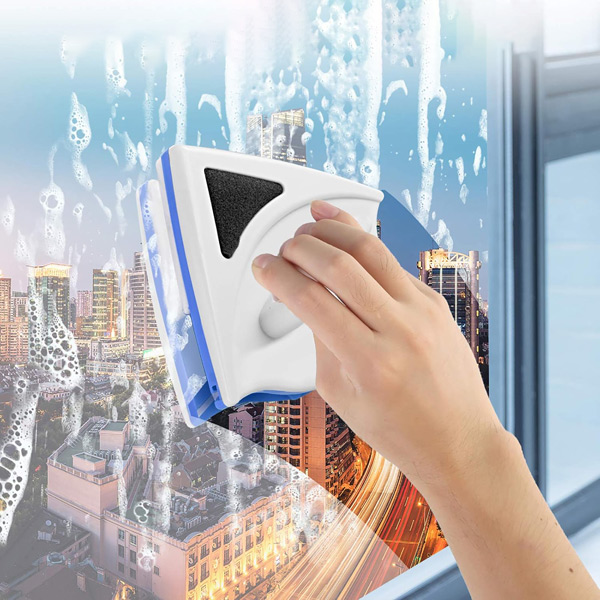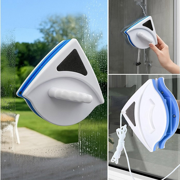 🧲 Divpusējs magnētiskais dizains: Spēcīgi magnēti droši notur tīrītāju abās stikla pusēs, ļaujot vienlaikus tīrīt ārējās un iekšējās virsmas.