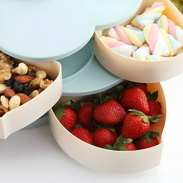 Divslāņu uzglabāšanas kārba, kas atveras kā zieds, ļauj viegli organizēt virtuvi un ietaupīt vietu.