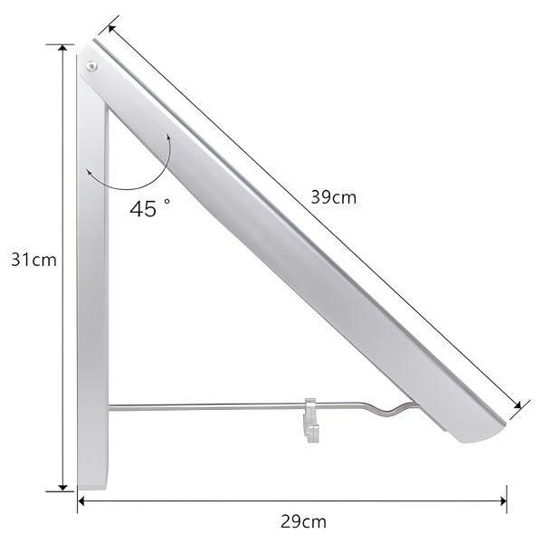 Šī salokāmā pakaramā izmēri ir tikai 39 x 4 x 2 cm, kad tas ir aizvērts, tāpēc tas ir ideāli piemērots šaurām telpām.