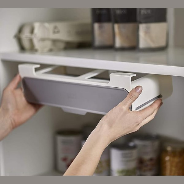 ✨ Šis uzglabāšanas bloks slīd zem plauktiem optimālai izmantošanai