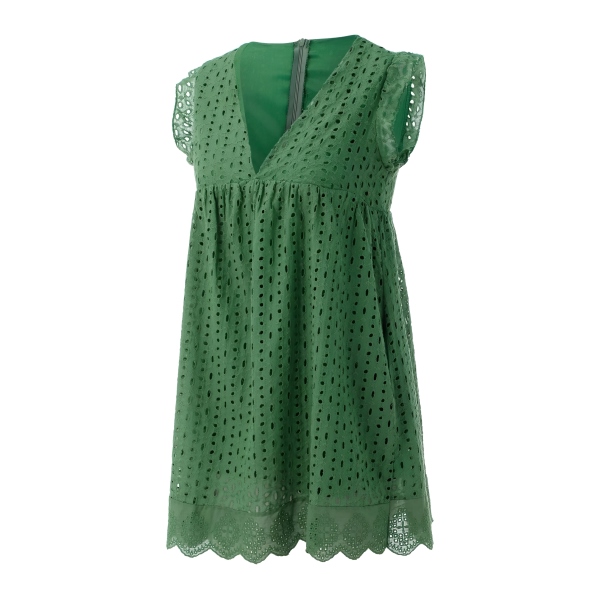 Iepazīsties ar pārlaicīgu skaistumu un vasaras garderobes pamatlietām. Izteikieties ar BELLACHIC V veida izgriezumu, kam ir unikāls dobu mežģīņu dizains. Šis izgriezums padara šo kleitu seksīgu un vienlaikus elegantu. Tā ir ideāli piemērota dažādiem apstākļiem, sākot no dienas izbraucieniem un beidzot ar vakara pasākumiem. Izstrādāta tā, lai būtu gan uzkrītoša, gan eleganta, tā nodrošina, ka jūtaties pārliecināta un skaista.