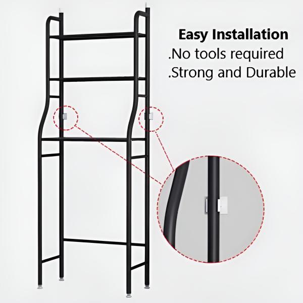 Trijos plauktos ar āķīšiem ir plaša vieta dažādiem vannasistabas piederumiem, sākot no skūšanās birstēm līdz kosmētikai un citiem.